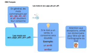 Les mots en acc-,app-,att-,arr-,aff-; leçon et exercices CM2